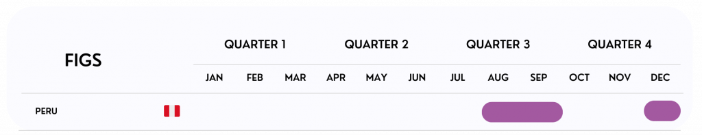 Miles Import offers a supply of figs in August, September, and December.